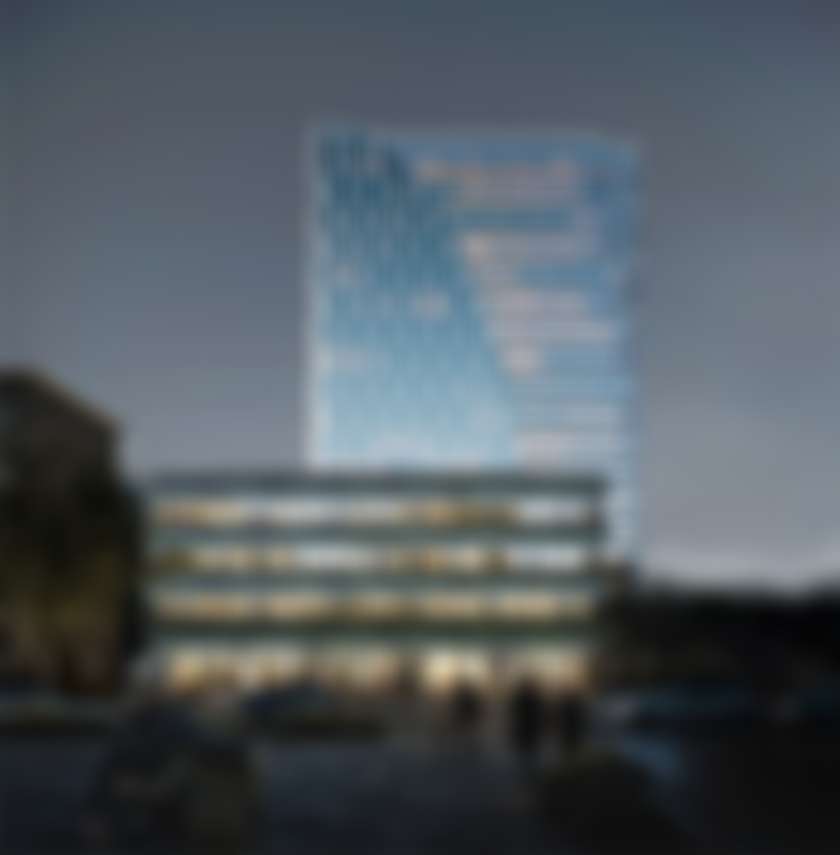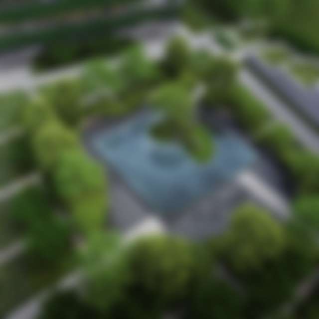 Ландшафт строится на сочетании природных форм и выверенной архитектурной геометрии. Вокруг водной глади предусмотрены комфортные места для отдыха среди зелени, навес и удобные скамьи. Вечером пространство мягко подсвечивается, а дорожки сада соединяют офисное здание и медицинский кластер.